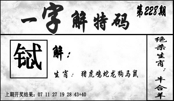 228期一字解特碼